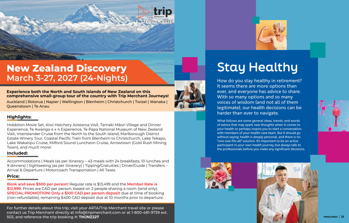 For further details about this trip, visit your ARTA / Trip Merchant travel site or please contact us Trip Merchant directly at info @ tripmerchant. com or at 1-800-481-9739 ext. 503, and reference the trip booking #: TMJNZ227