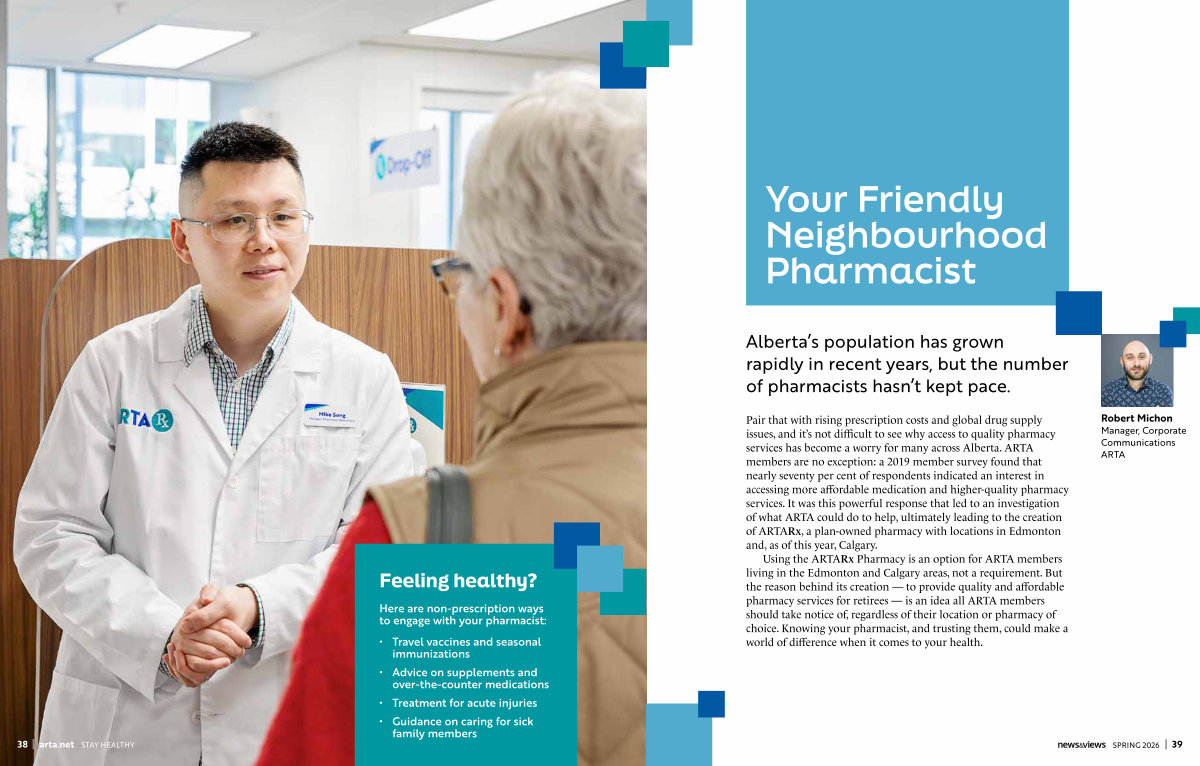 Using the ARTARx Pharmacy is an option for ARTA members living in the Edmonton and Calgary areas, not a requirement. But the reason behind its creation— to provide quality and affordable pharmacy services for retirees— is an idea all ARTA members should take notice of, regardless of their location or pharmacy of choice. Knowing your pharmacist, and trusting them, could make a world of difference when it comes to your health.