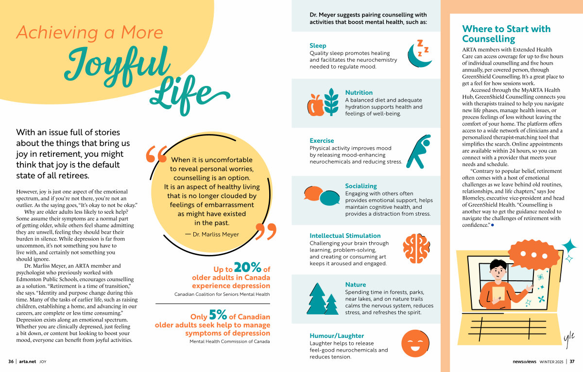 “ Contrary to popular belief, retirement often comes with a host of emotional challenges as we leave behind old routines, relationships, and life chapters,” says Joe Blomeley, executive vice-president and head of GreenShield Health.“ Counselling is another way to get the guidance needed to navigate the challenges of retirement with confidence.”